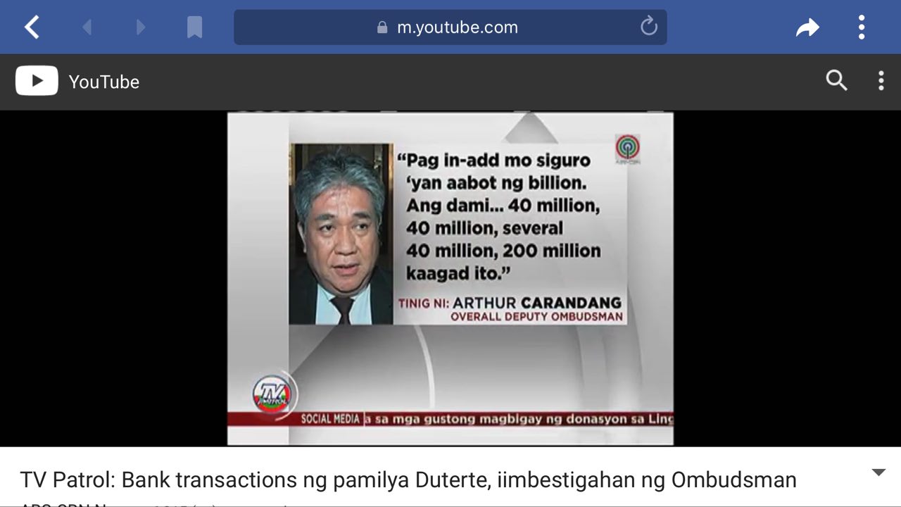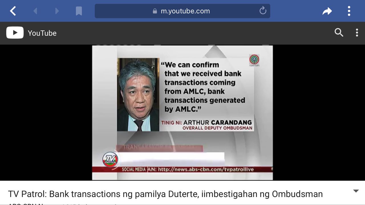 Mukhang medyo tagilid po kayo sa report ng AMLC sa transactions bank records niyo. Nasa Ombudsman na ang lahat ng dokumento. Pinanood ko sa TV ang pahayag nila. Resibo.