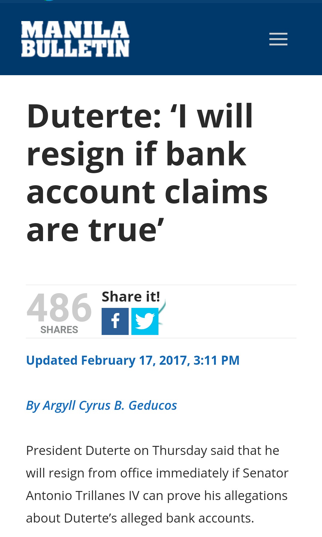 Hala ka, mukhang tama si Trillanes. Paano po yan di ba sabi niyo pag mapatunayan ang bilyones niyong bank account ay mag-reresign kayo? Resibo.
