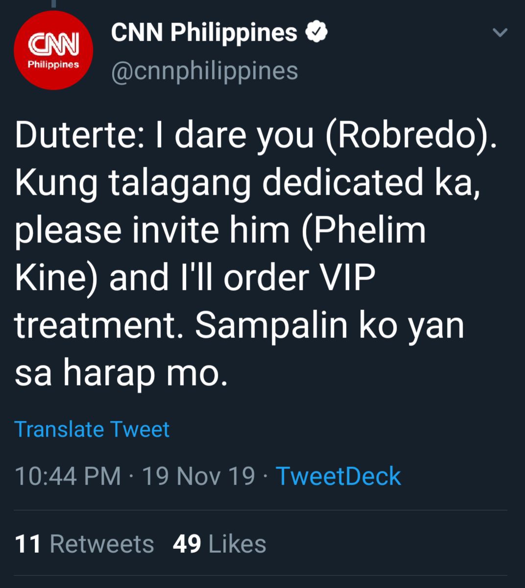 Yung hinahamon niyo po ng sampalan, hindi po yan prosecutor from ICC, huwag kayong mema, Si Phelim Kine is former HRW official ang pangalan po ng prosecutor ng ICC ay si Fatou Bensouda. Try niyo pong iresearch gamit ang bilyones niyo na intelligence fund.