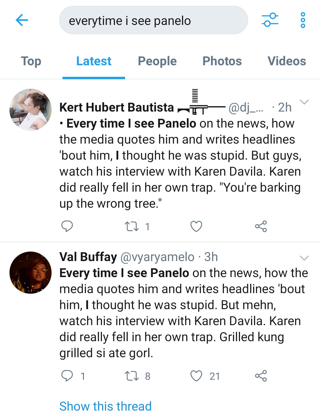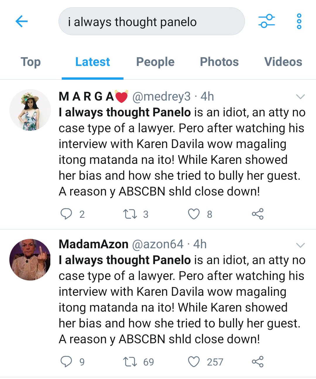 Ang purpose nila is to make Karen Davila trend and discredit her and make Sal “Mang Kepweng” Panelo worthy and praise him.
