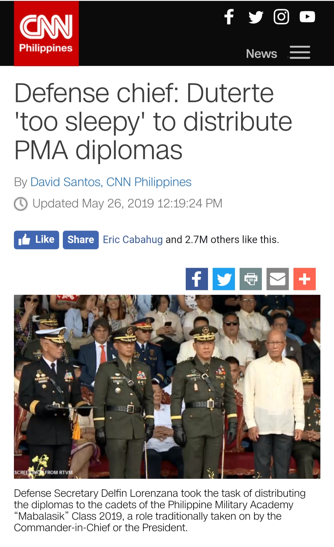 Napanood ko po kayo kahapon sa PMA graduation. Halata po talaga na nanghihina po kayo. Kung hindi pa kayo inalalayan baka natumba pa kayo.