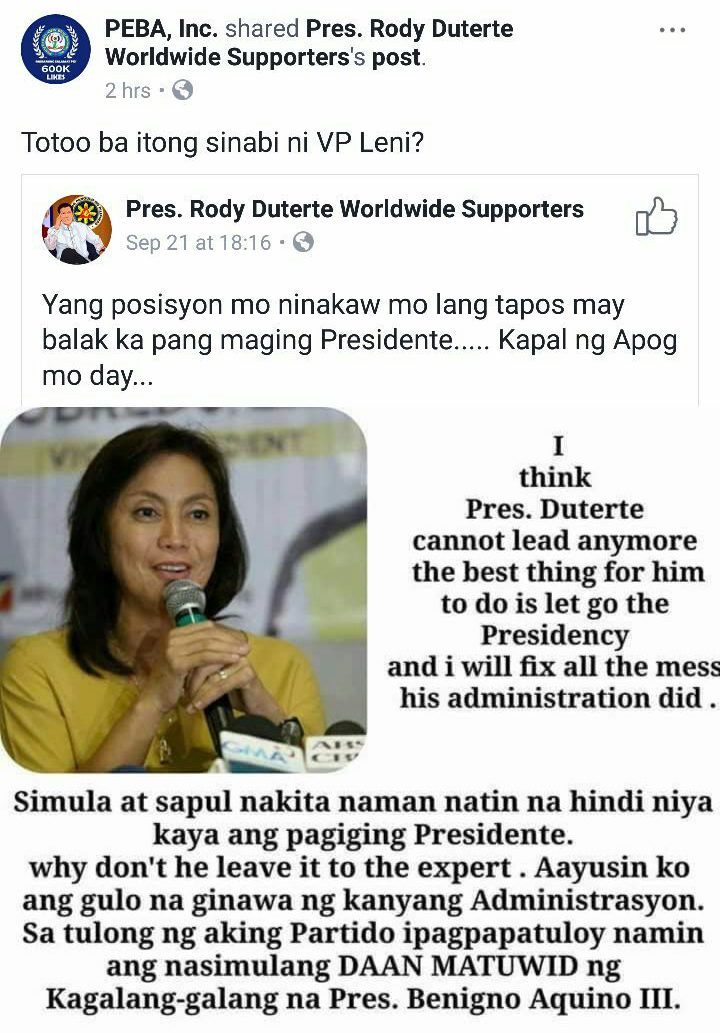 May bago na naman bang instructions ang troll farm? After mabisto ang fake news achievement, ngayon si VP Leni Robredo na naman ang gagawan ng kwento. Eto ngayon ang kumakalat na fake news.