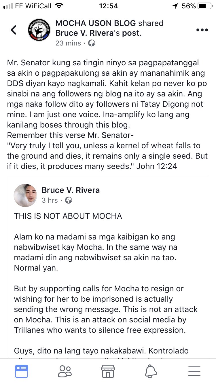 Bruce Rivera to Trillanes: Mocha targeted you because you’re nasty. Mocha is just doing the same to you. Mocha isn’t bullying you, you’re bullying her.