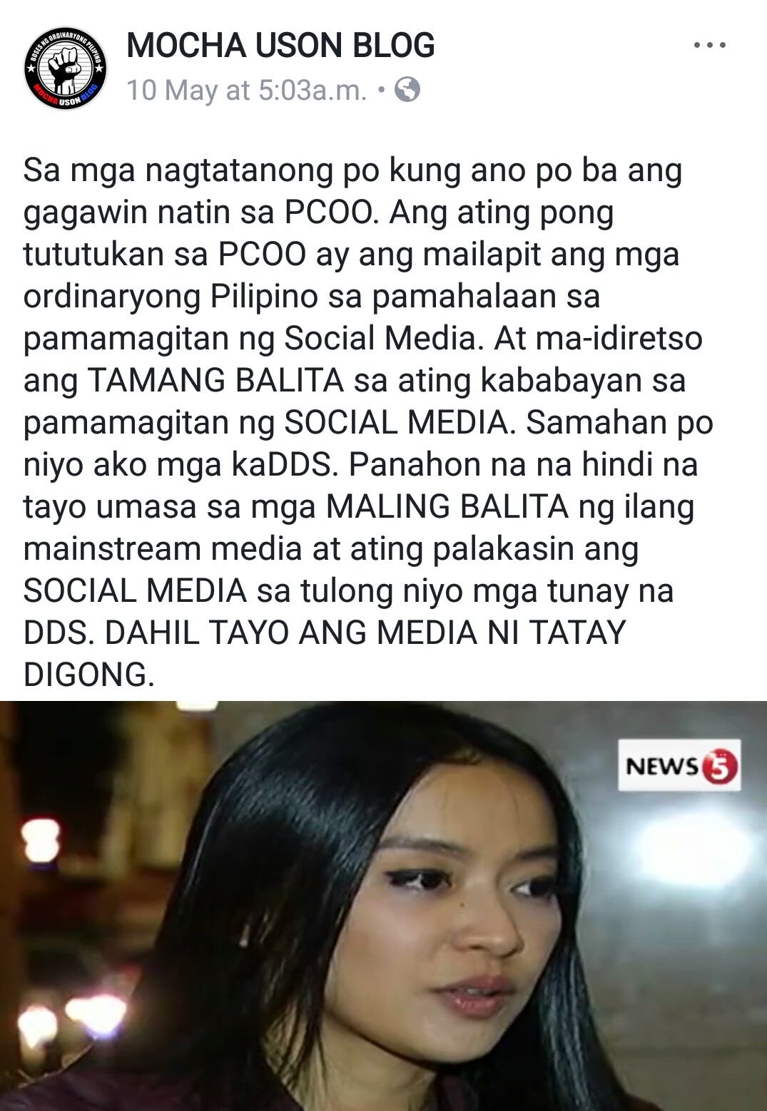 Nyek, mali po kayo. Di ba nga sabi ni Ate Mocha sya ang media ni Tatay Digong. Resibo.