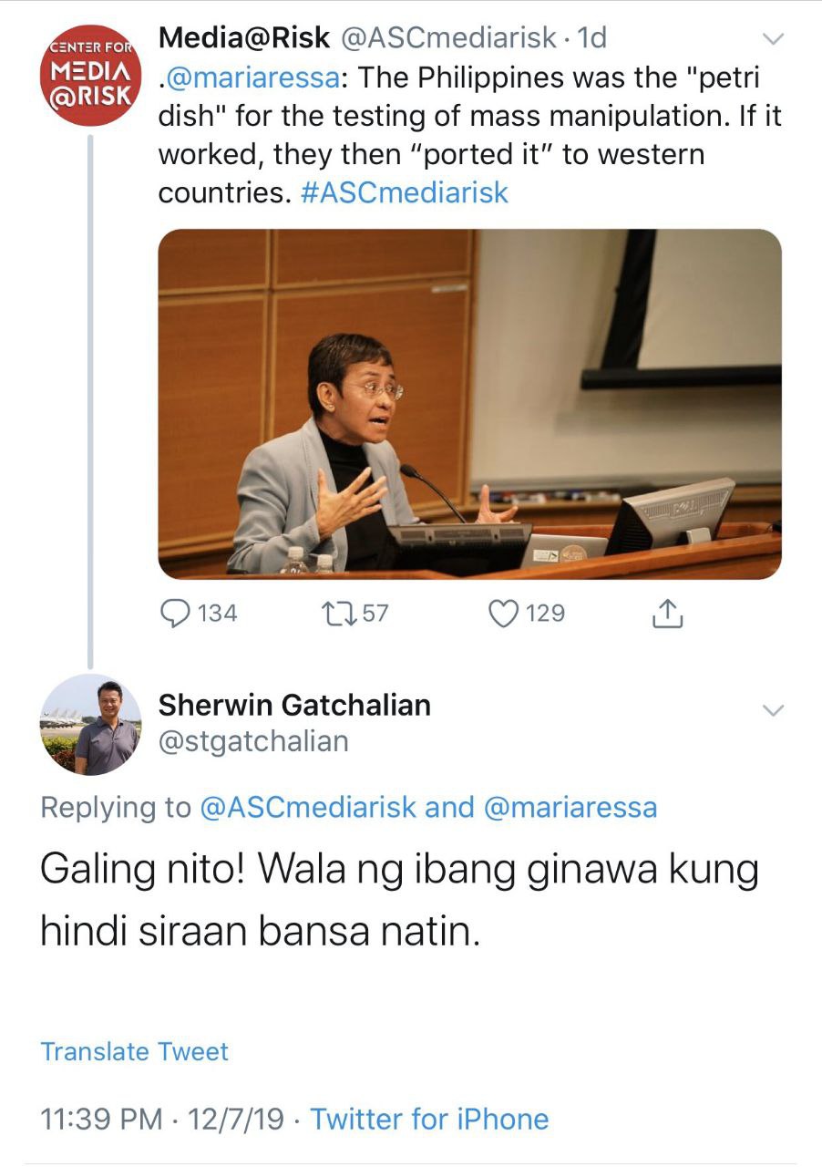 — Maria Ressa (@mariaressa) December 8, 2019