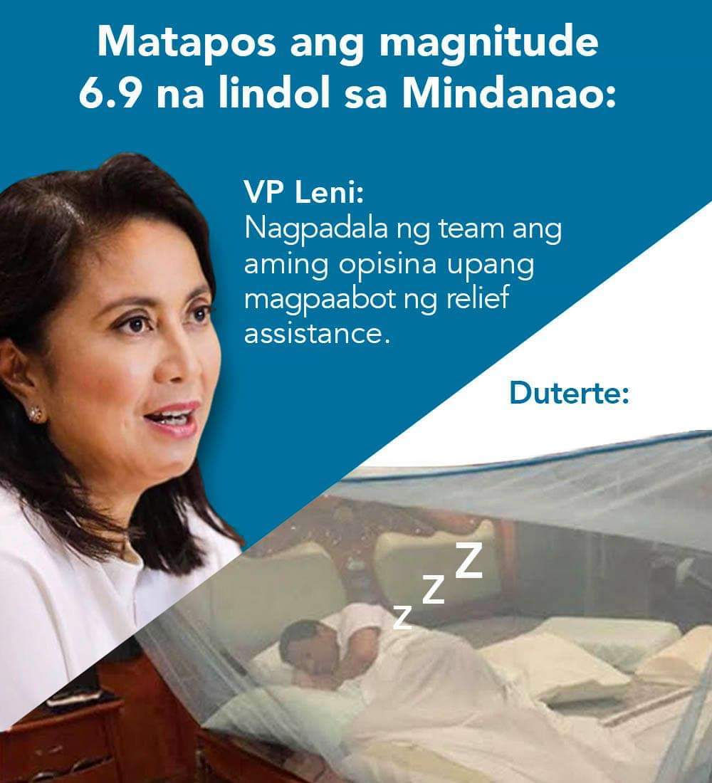 Kabaliktaran naman sa ginawa ni VP Leni na agad nagpadala Ng tulong kung saan may sakuna.